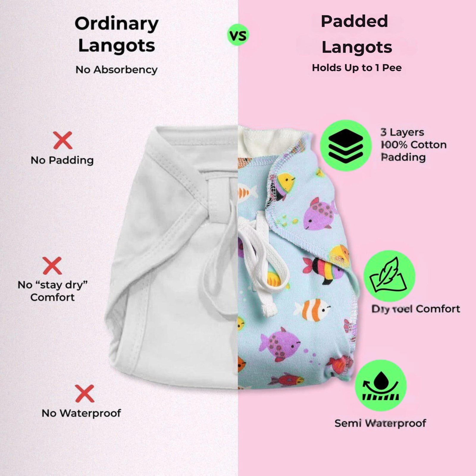 Pack of 6 – Mess free Padded Nappies | Quick Deep Absorption | Mixed Colours | 30% off.